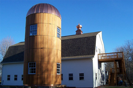 Application: Customer desired a copper dome roof to match the copper cupolas on their new barn. The copper dome roof is used to top off their custom built silo that goes with the barn. The silo will be used as a pool house for the in-ground pool.