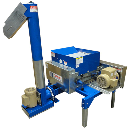 Power requirements are reduced because nonsynchronous roll speeds shred or grind the grain instead of compressing it. The heavy duty chain drive, self-aligning bearings (sealed for life), and large-diameter fatigue-proof shafts--all critical components--contribute to the durability and quality of the DeMuth Roller Mills.